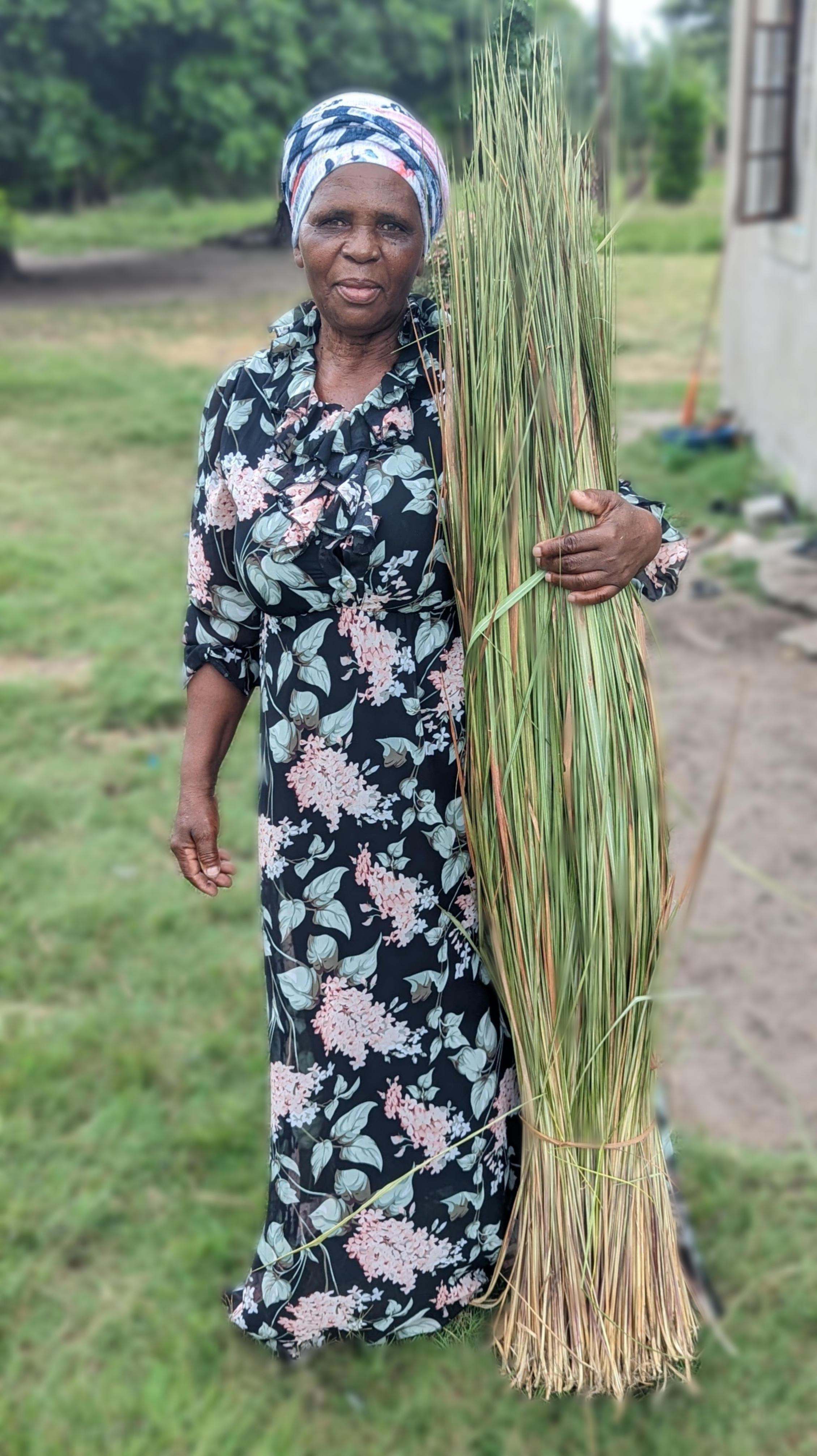 BONISIWE, ONE OF OUR SKILLED WEAVERS, UTILIZES ILALA PALM IN KWAZULU-NATAL.
